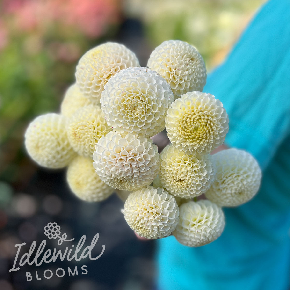 Bowen is one of my favorite pompons. She is a dainty ivory with a touch of pink blush inside the petals Strong stems and early blooming. A tall plant for a pompon. Also shows well. Late in the season she will get burgundy flecks. I prefer her to Small World. Where to buy Bowen dahlia tubers? We sell Bowen dahlia bulbs right here at Idlewild Blooms! You can wishlist Bowen on this page. We typically have Bowen dahlia tubers for sale in January each year and we ship in March, April & May.