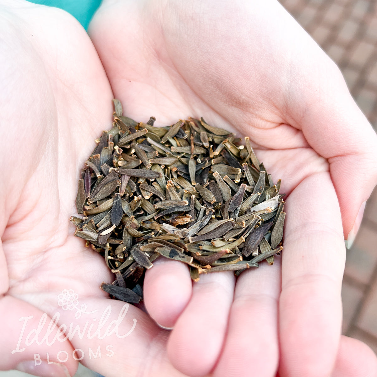 Hand harvested in Stanwood, WA from open pollinated, fully double dahlias. At least 150 seeds per packet (we measure by a 1 1/2 tsp which typically over measures).