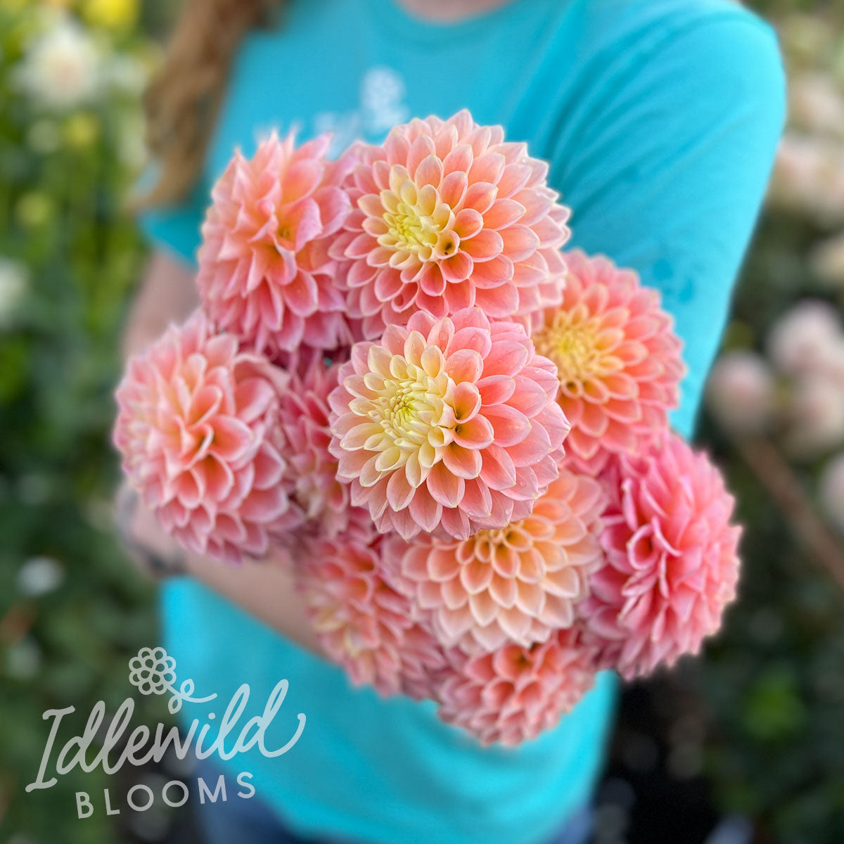 Sugartown Sunrise is an underrated cut flower, producing an abundance of blooms all season long. Her warm, tropical blend of mango and grapefruit pink makes her an all around standout. Where to buy Sugartown Sunrise dahlia tubers? We sell Sugartown Sunrise dahlia bulbs right here at Idlewild Blooms! You can wishlist Sugartown Sunrise on this page. We typically have Sugartown Sunrise dahlia tubers for sale in January each year and we ship in March, April & May.