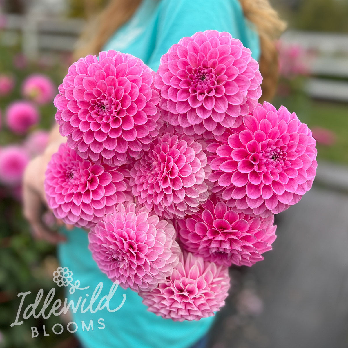 Sweet Fabienne is one of my favorite pinks. She's totally Barbie. I love how her petal tips are sometimes just barely split. Cute in bouquets. Earliest bloomer in the field and doesn't quit. Her one downside is slightly bendy stems. Tubers store soft and wrinkly. Where to buy Sweet Fabienne dahlia tubers? We sell Sweet Fabienne dahlia bulbs right here at Idlewild Blooms! You can wishlist Sweet Fabienne on this page. We typically have Sweet Fabienne dahlia tubers for sale in January each year and we ship in March, April & May.