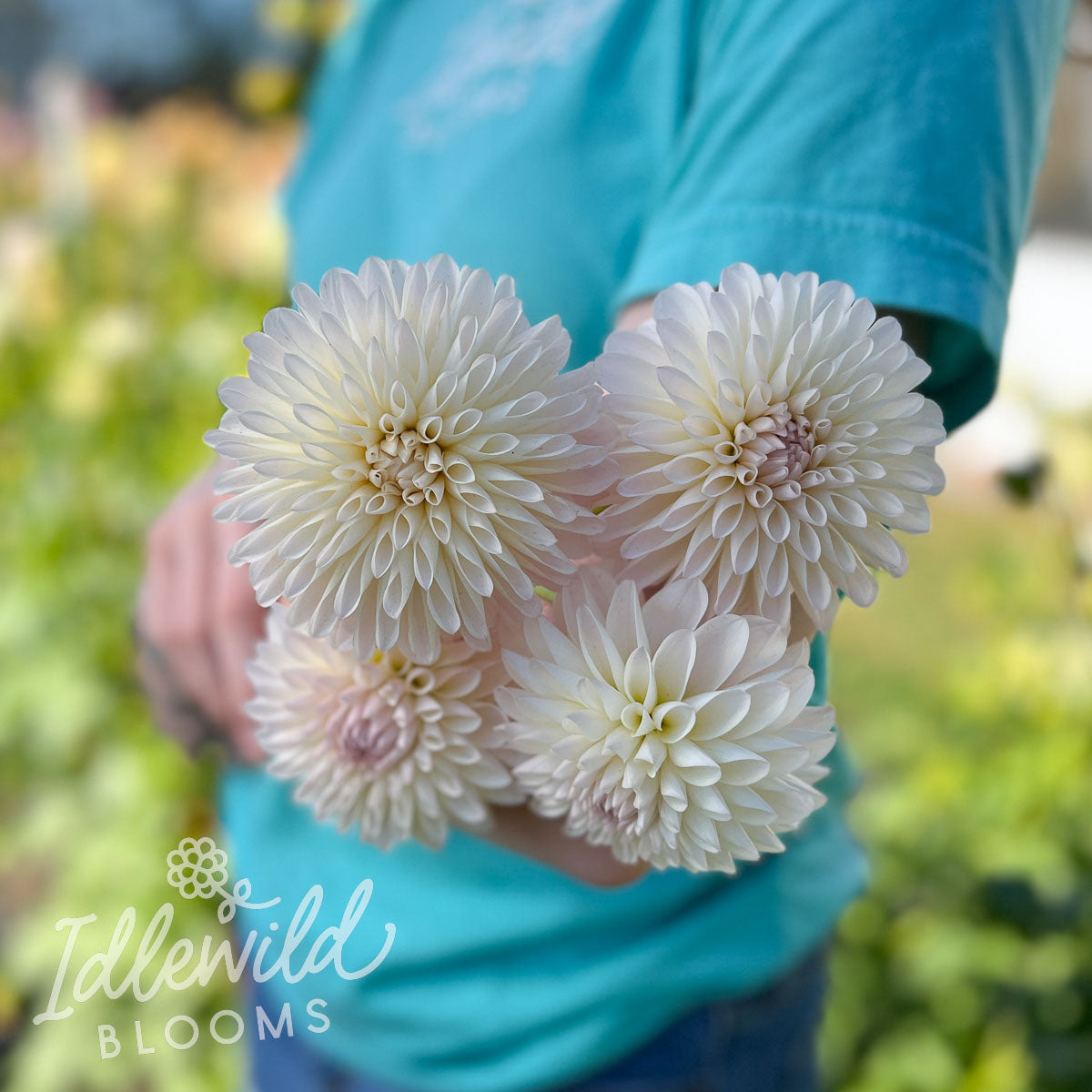 Tahoma Stellar Feller is an instant favorite, featuring an elegant stellar form. Her pearly ivory petals are kissed with a delicate mauve blush, making her a soft yet striking addition to any floral display. Makes very few tubers. Where to buy Tahoma Stellar Feller dahlia tubers? We sell Tahoma Stellar Feller dahlia bulbs right here at Idlewild Blooms! You can wishlist Tahoma Stellar Feller on this page. We typically have Tahoma Stellar Feller dahlia tubers for sale in January each year and we ship in March, April & May.