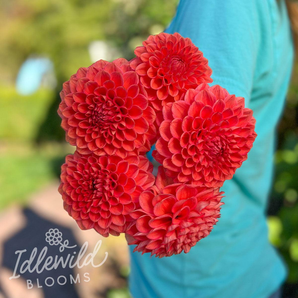Tempest is an electric watermelon-red cut flower. Her petals sunbleach as they age, creating a luminous effect. A stunning choice for bright summer arrangements with an ever-changing, glowing appearance. Where to buy Tempest dahlia tubers? We sell Tempest dahlia bulbs right here at Idlewild Blooms! You can wishlist Tempest on this page. We typically have Tempest dahlia tubers for sale in January each year and we ship in March, April & May.